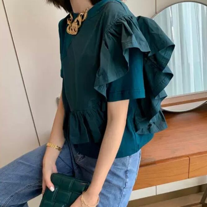今季も引き続き注目のアシンメトリーデザイン。斜めに施された大きめフリルが存在感を醸し出しつつ、程よくモードな仕上がりに♪