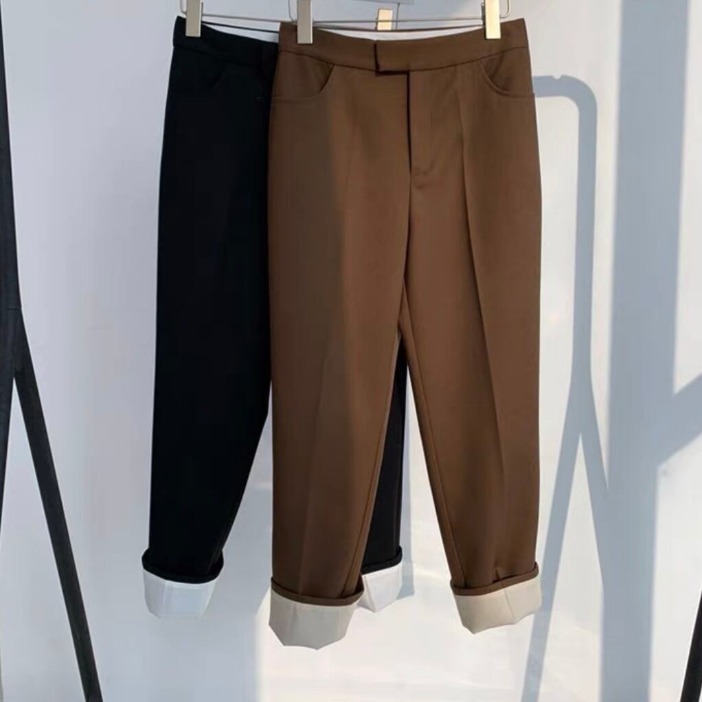美脚効果が期待できるハイウエスト仕様&フロントのピンタックがポイント♪
