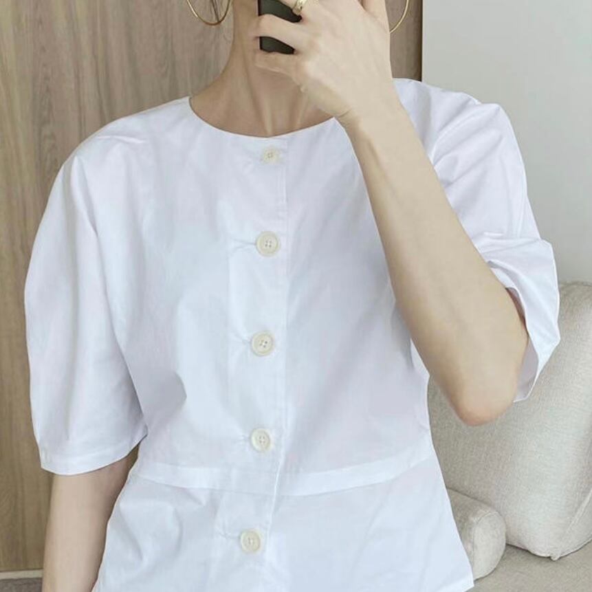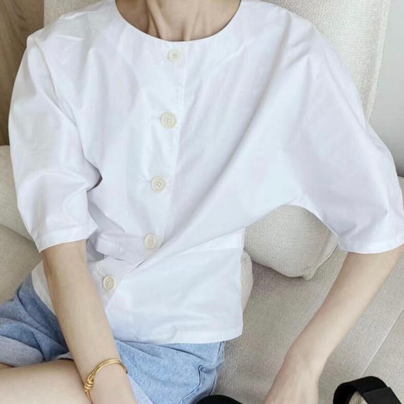 程よく二の腕をカバーする長めの袖丈に落とし込み、女性らしくシーンを問わず着られる一枚です。