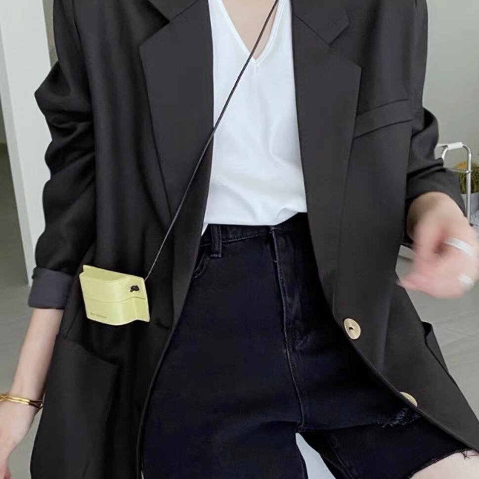 ゴールドボタンがアクセントのジャケット。