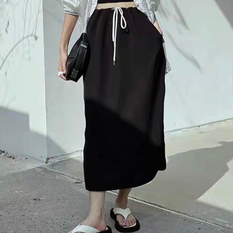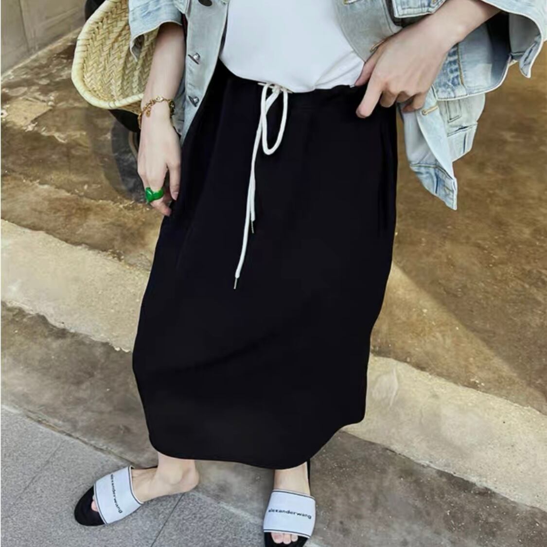 ラウンドヘムとウエストリボンが特徴的なスカート。
