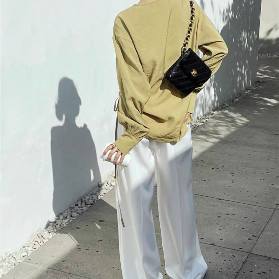 サイドに施されたシャーリングデザインが細見え効果◎女性らしさを演出してくれます♪