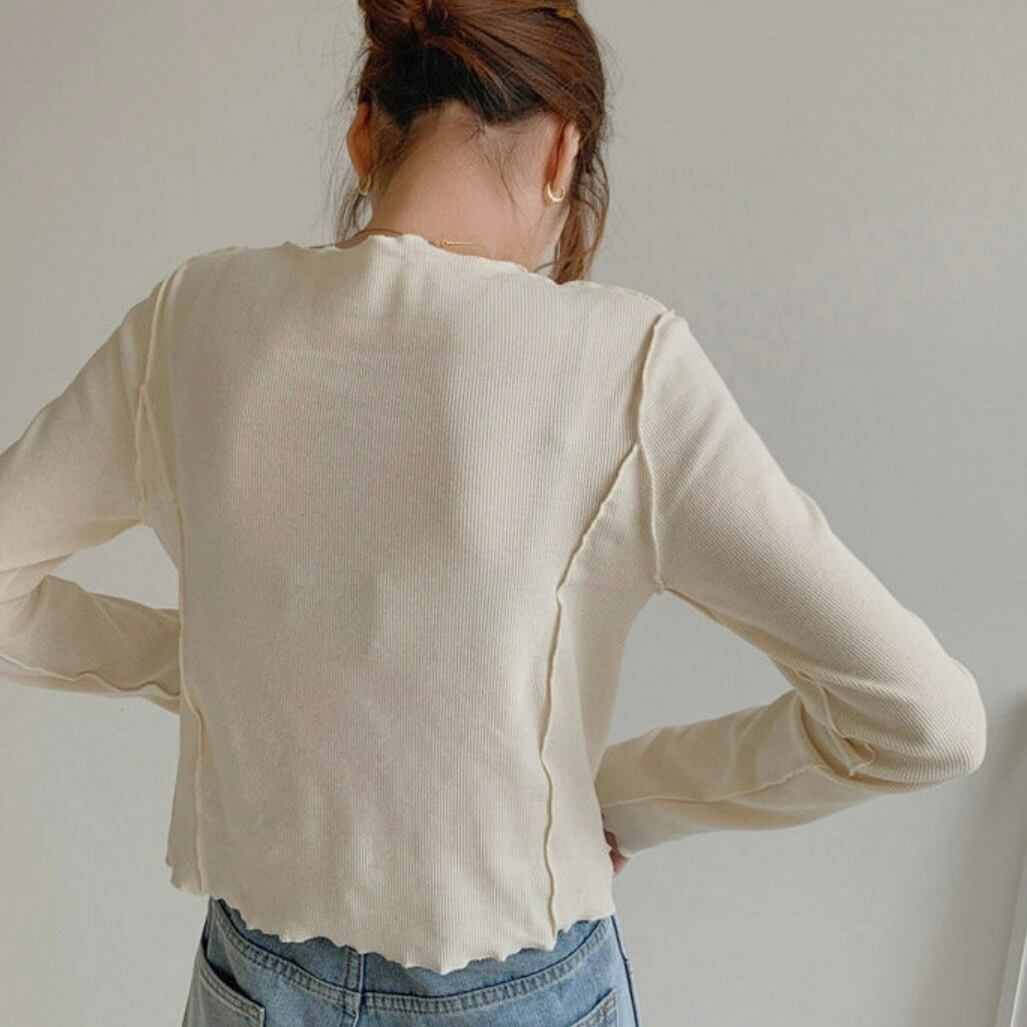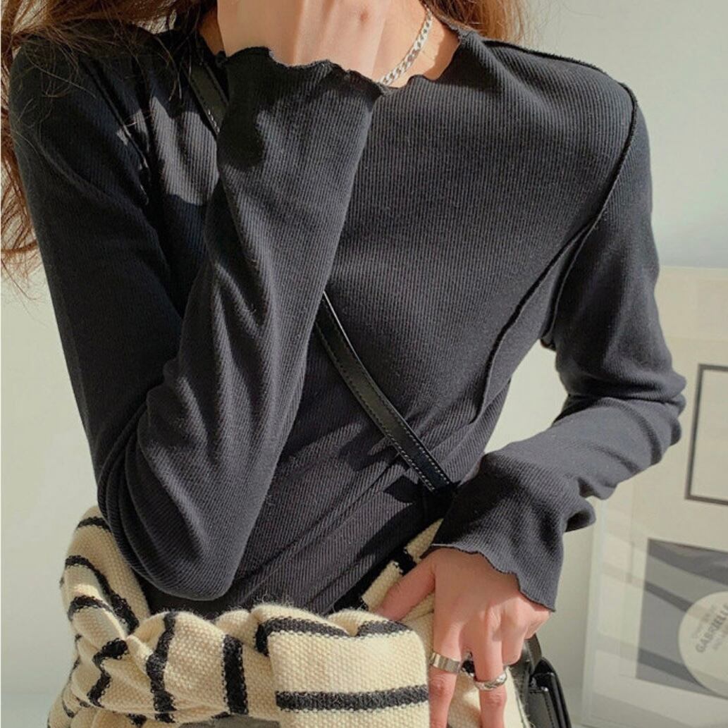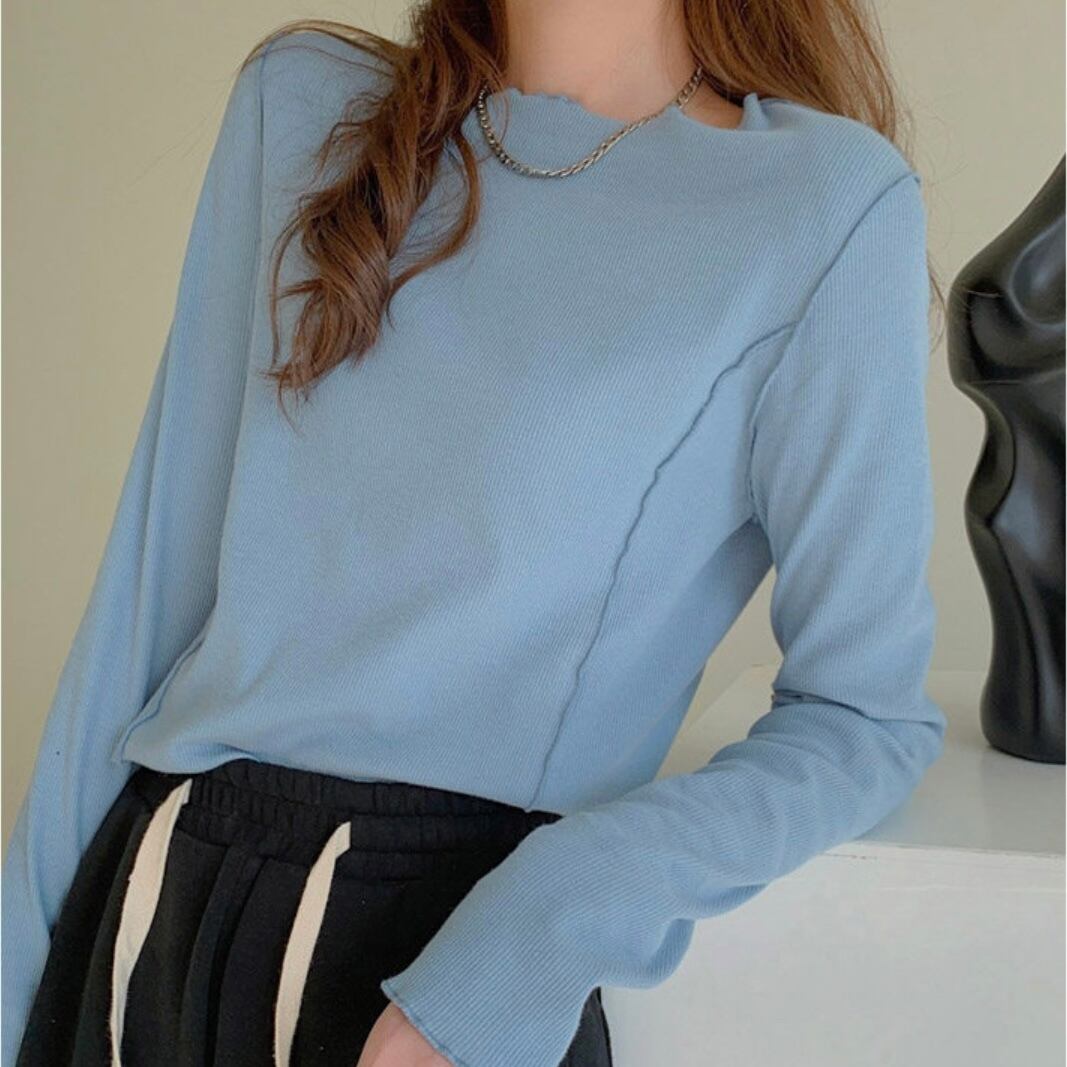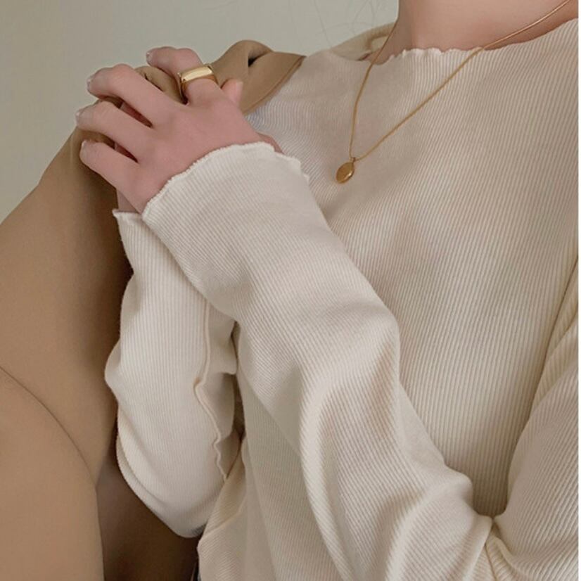 細リブ仕上げながらタイトフィットになり過ぎず、心地よく着こなせるのが嬉しいポイント♪
