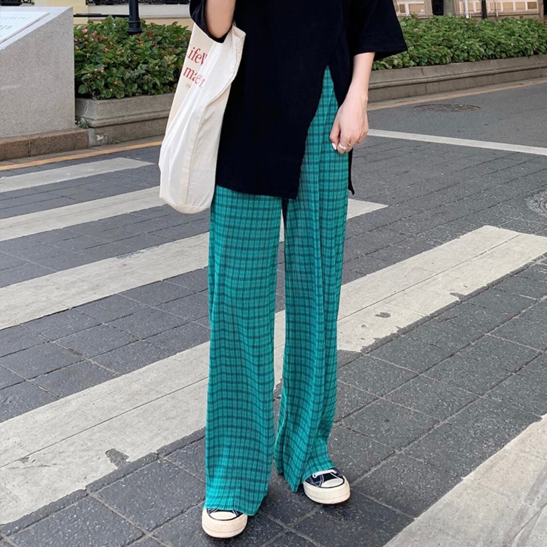 グリーンのチェック柄がトレンド感のある華やかなスタイリングを演出してくれます。