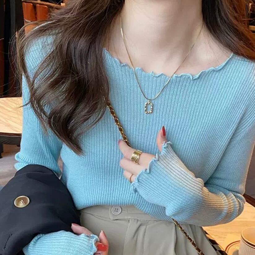 前下がりの少ない横に広くメローネックが可愛すぎず、上品さのある仕上がりに♪