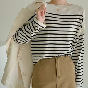 ボートネック部分にさりげなくリブを施し変化をつけこなれ感を演出♪