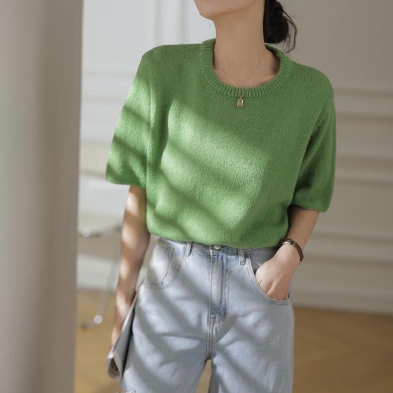 ラウンドネックで首元、デコルテ周りがすっきり華奢見え♪