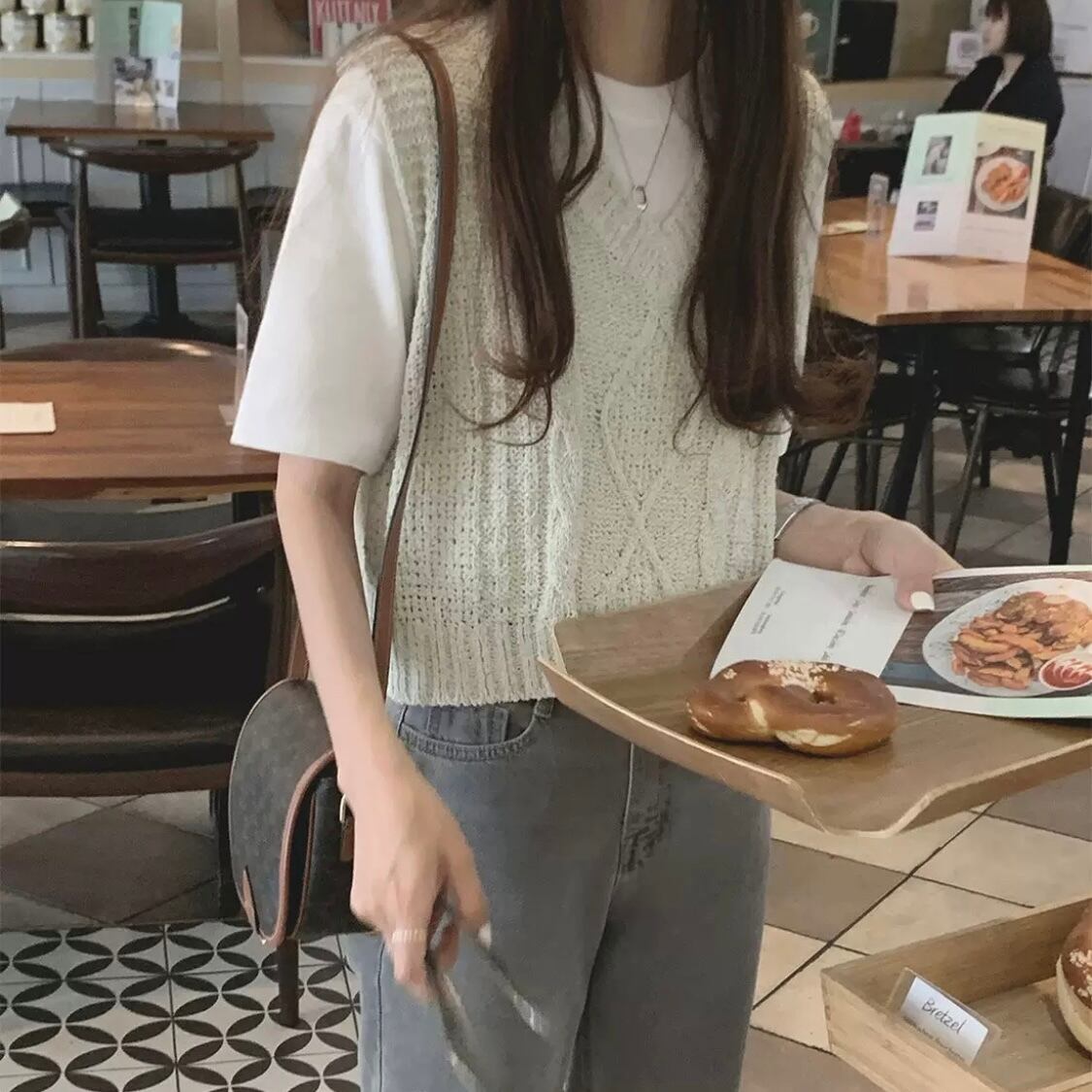 深めのVネックが春らしくさわやかな雰囲気にピッタリ。