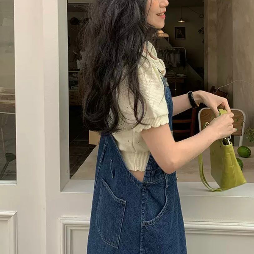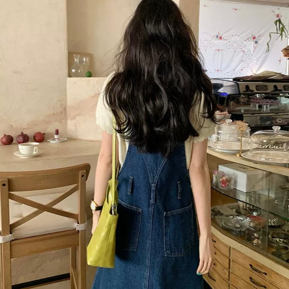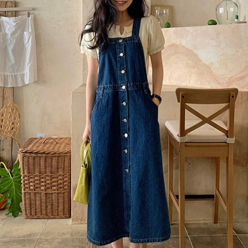 前開きのボタンデザインが今年らしい、フェミニンなジャンパースカート。