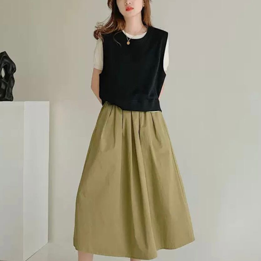 ウエストのタックとギャザーで、ふんわり裾広がりの立体的なフレアーがポイントのスカート。