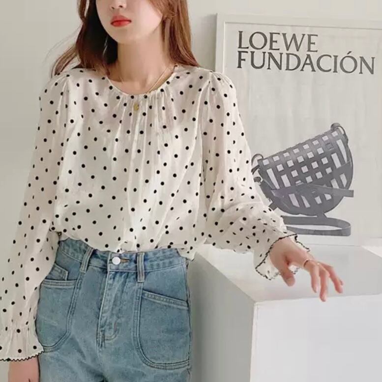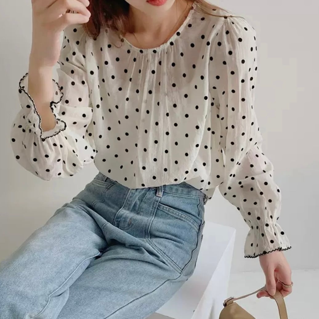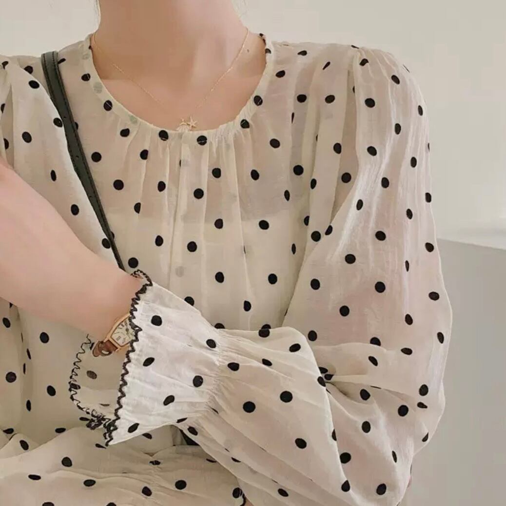 ドット柄が映える大人可愛いシアーブラウス。