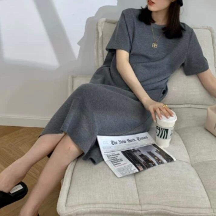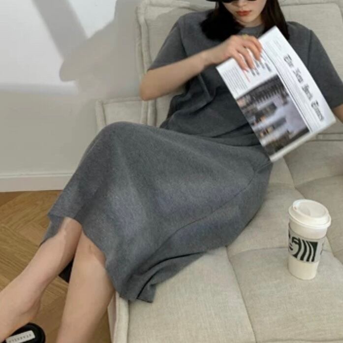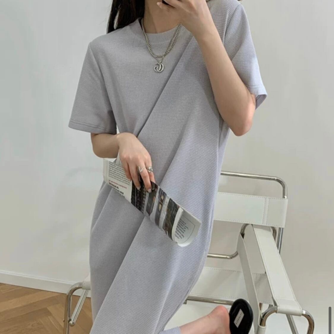 ゆとりのあるシルエットがさらりと1枚でも着こなしやすい半袖ワンピース。