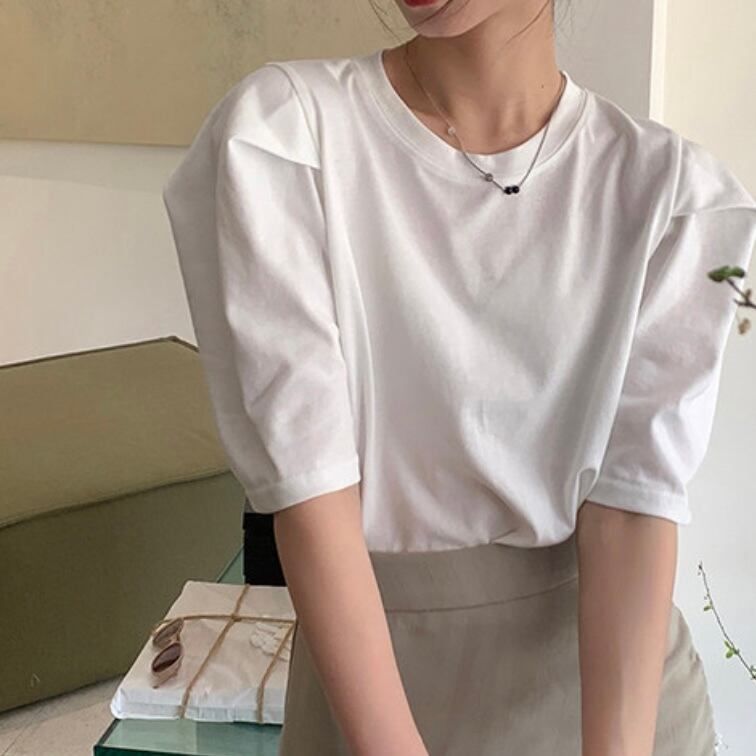 大きく取ったタックとカーブラインが特徴のパフスリーブでフェミニンな印象を与えます♪