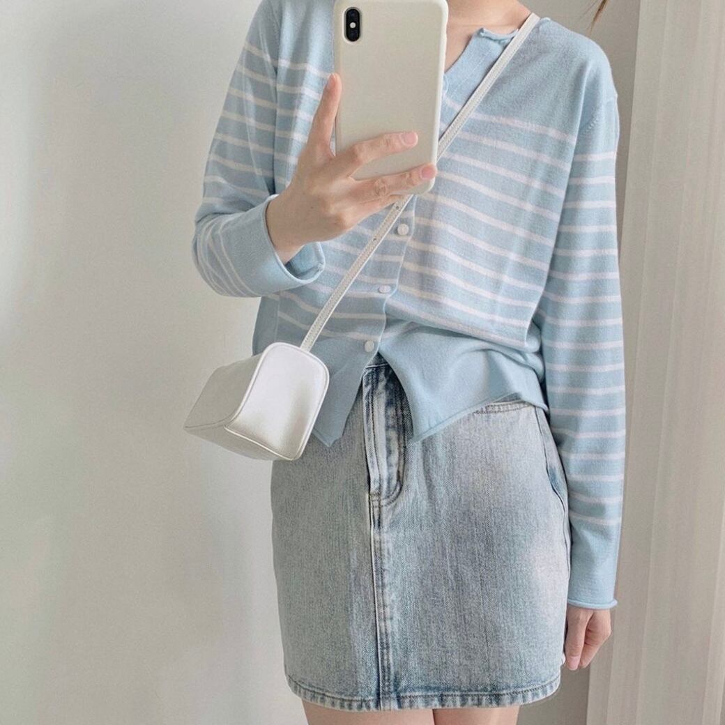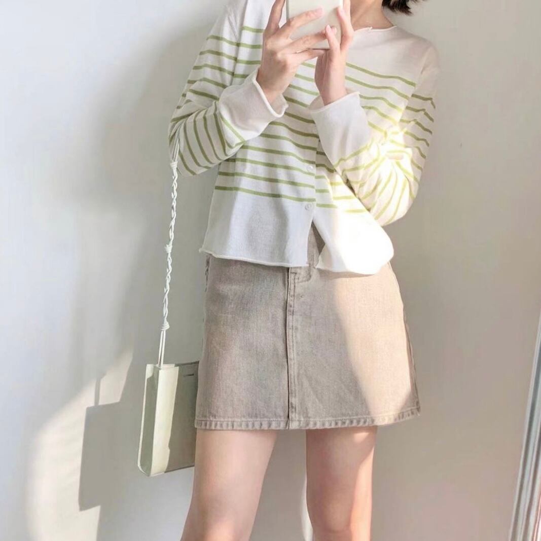 大人カジュアルを品よく着こなすボーダー柄カーディガン。