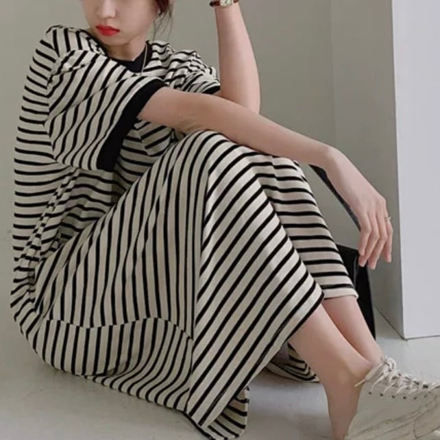 ゆったりとしたシルエットで大人カジュアルを叶えるリンガーボーダーワンピース。