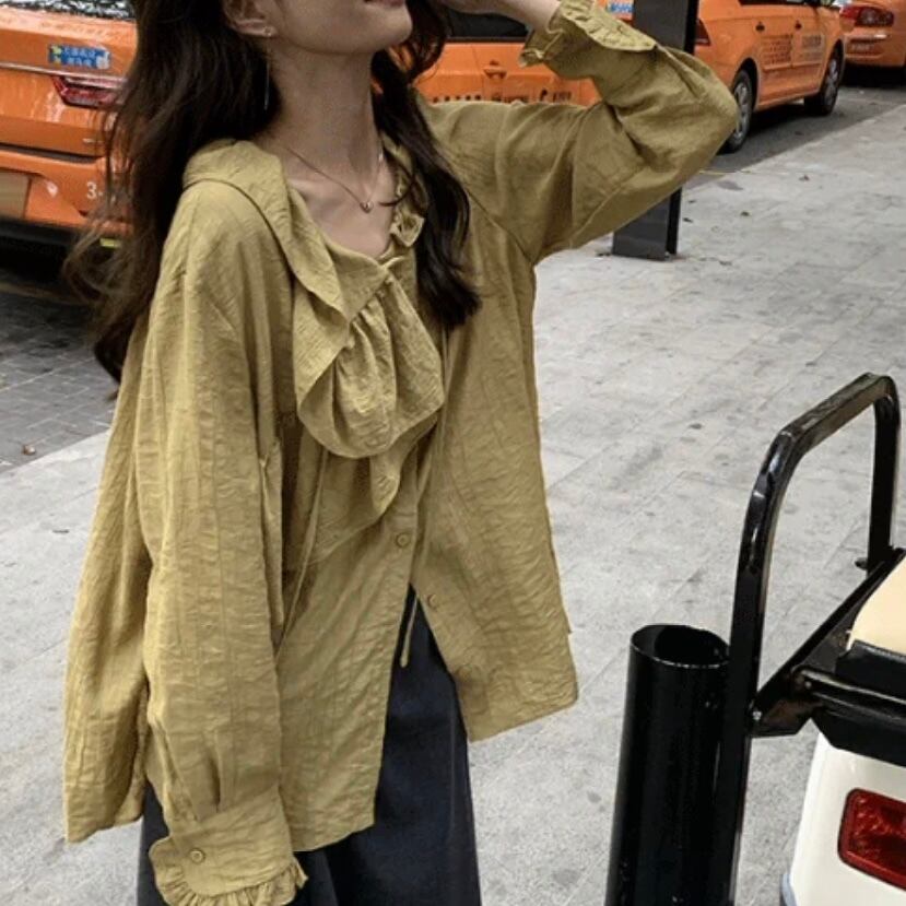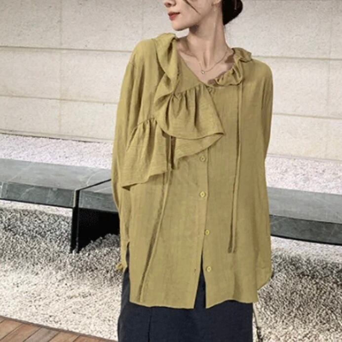 ヴィンテージライクなディテールが光るフリルブラウス。