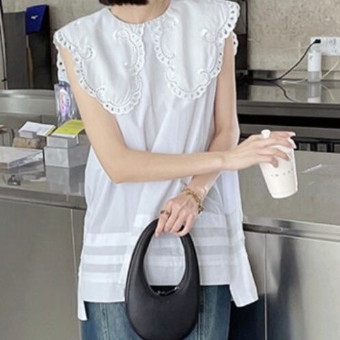 デコラティブなトレンド感のあるビッグカラーノースリーブシャツ。