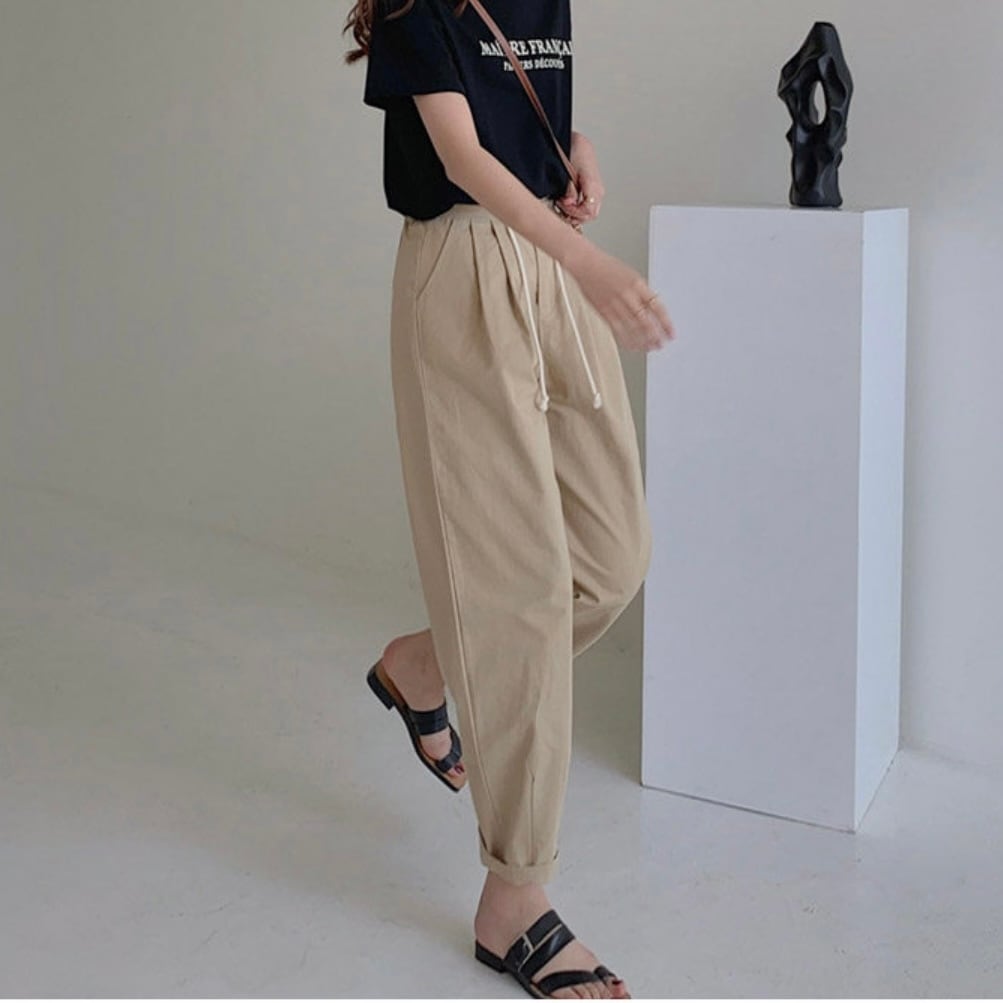 タックデザインが創り出すボリュームのあるバルーンシルエットが魅力のワイドパンツ。