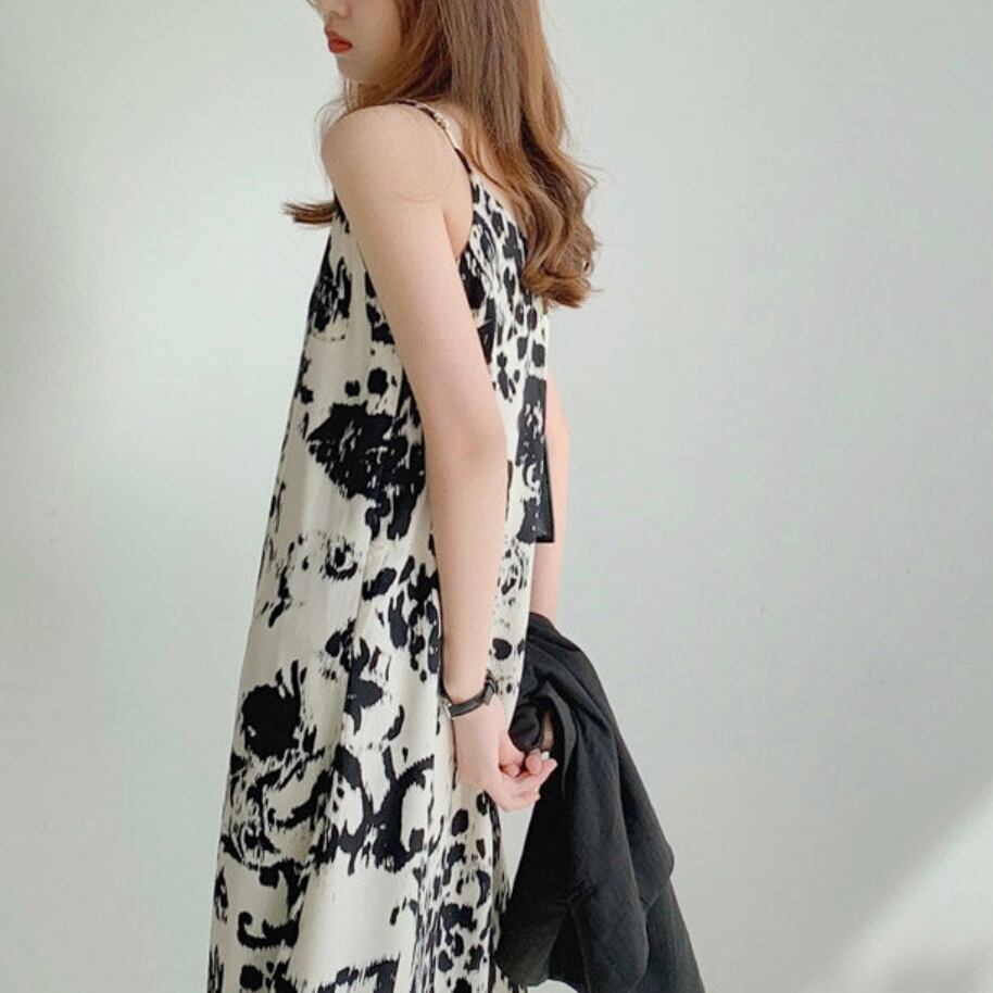 シックなデザインが大人っぽい印象のキャミワンピース。