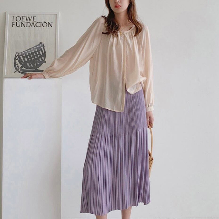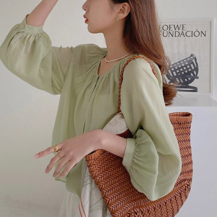 袖は少しふわっとしたボリュームスリーブになっていて女性らしさも◎