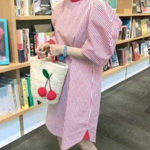 縦長のすっきりとしたシルエットにボリュームスリーブが女性らしく映えるワンピース♪