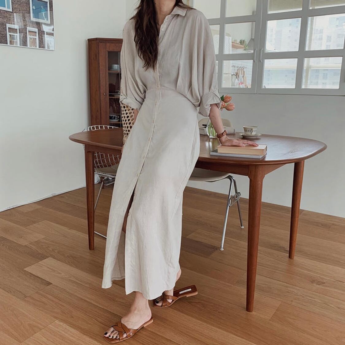 シンプルベーシックな中にもフェミニンなムードで大人の女性に似合う一枚です。