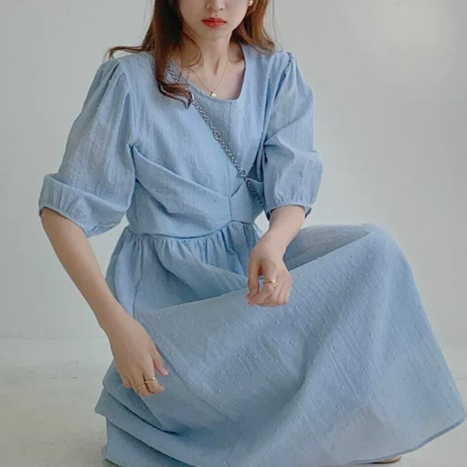 ビスチェレイヤード風のデザインと、さり気ないドットパターンがアクセントのワンピース。