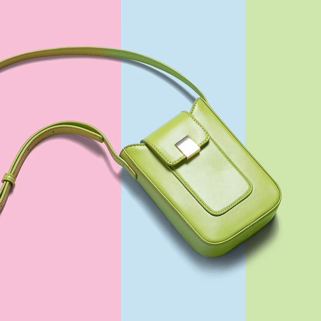 ミニマルなサイズ感が便利で可愛いフェイクレザーミニショルダーバッグ。