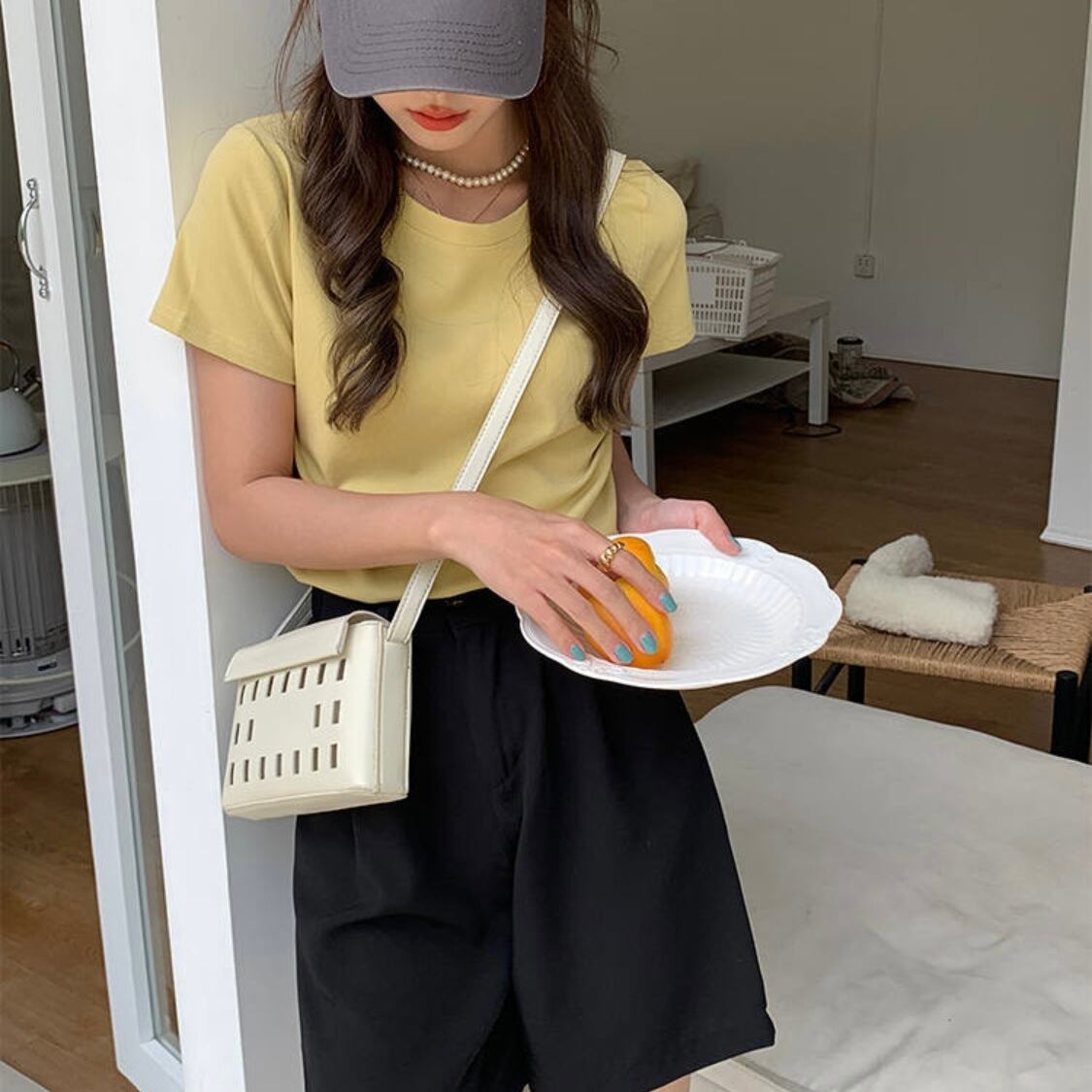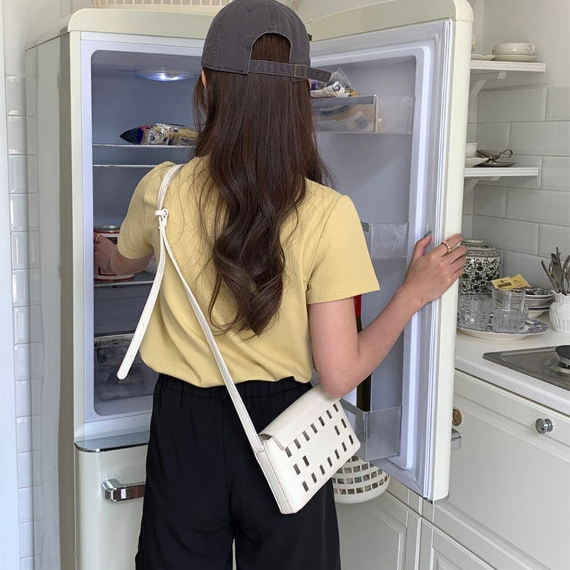 透け感のあるパンチングデザインがスタイリングのアクセントになるショルダーバッグ。