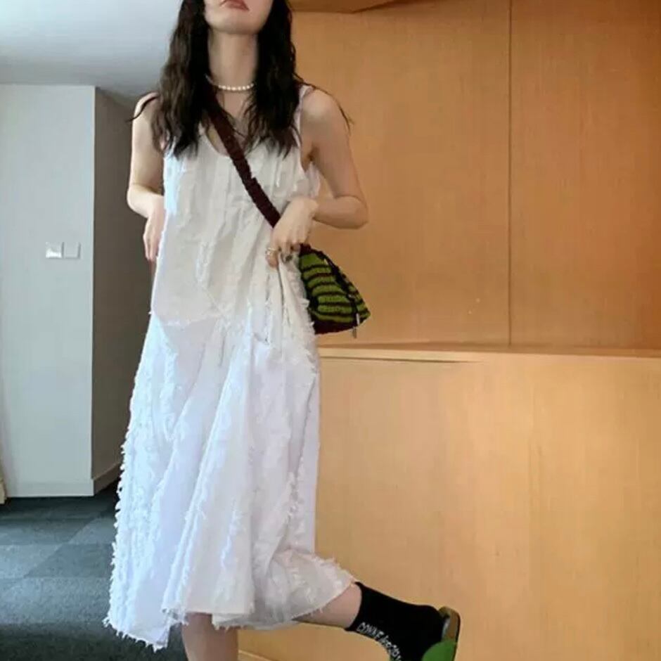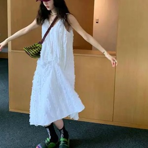 たっぷりとあしらったフリンジがほのかに揺れるレディなワンピース。
