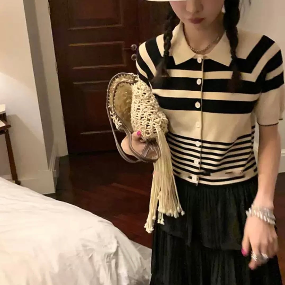 ボタンを閉じてプルオーバーで着ても、さっと羽織ってカーデで着てもOKなコーデの幅も広がるトップスです。