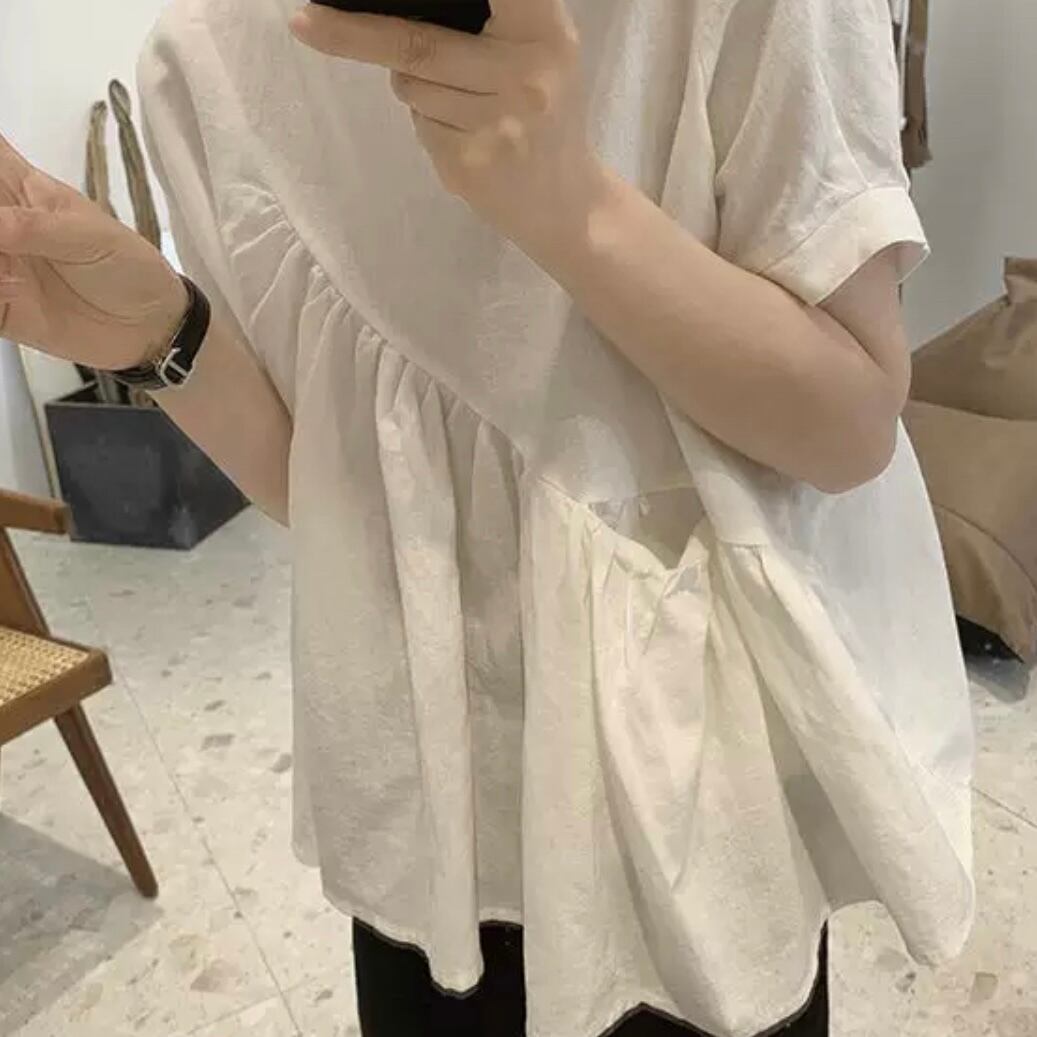 甘くなり過ぎないように、斜めにカッティングを入れたフリルがポイントのトップス♪