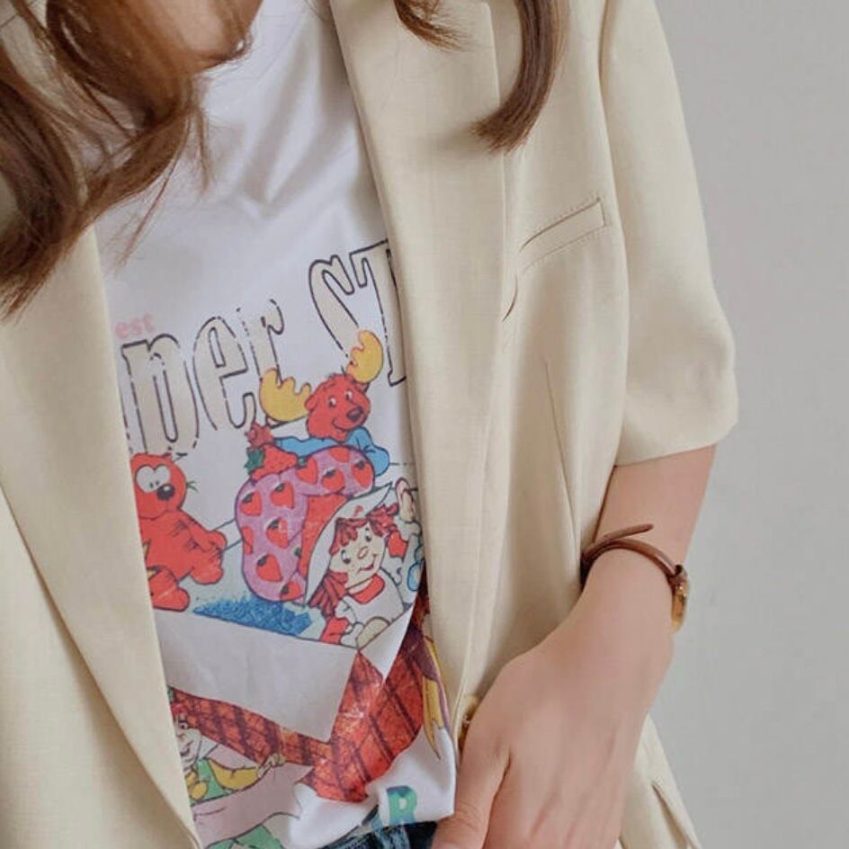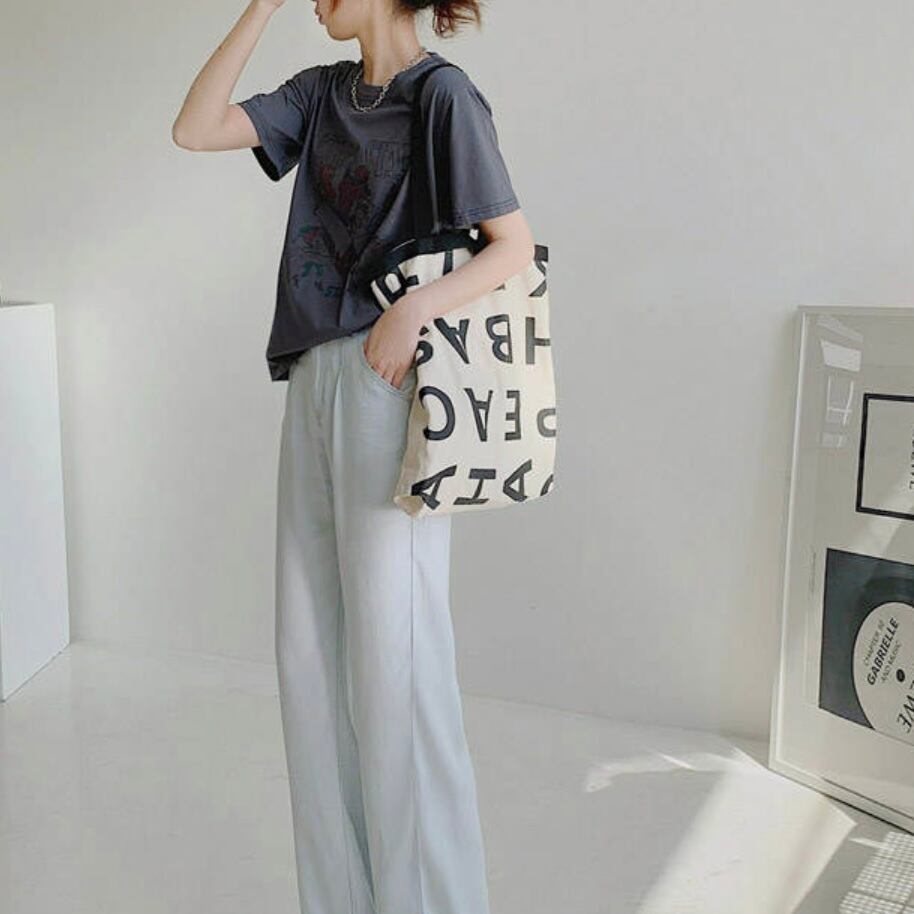 カジュアル感のあるプリントなので、きれいめなパンツやスカートをあえて合わせるのもおすすめです◎