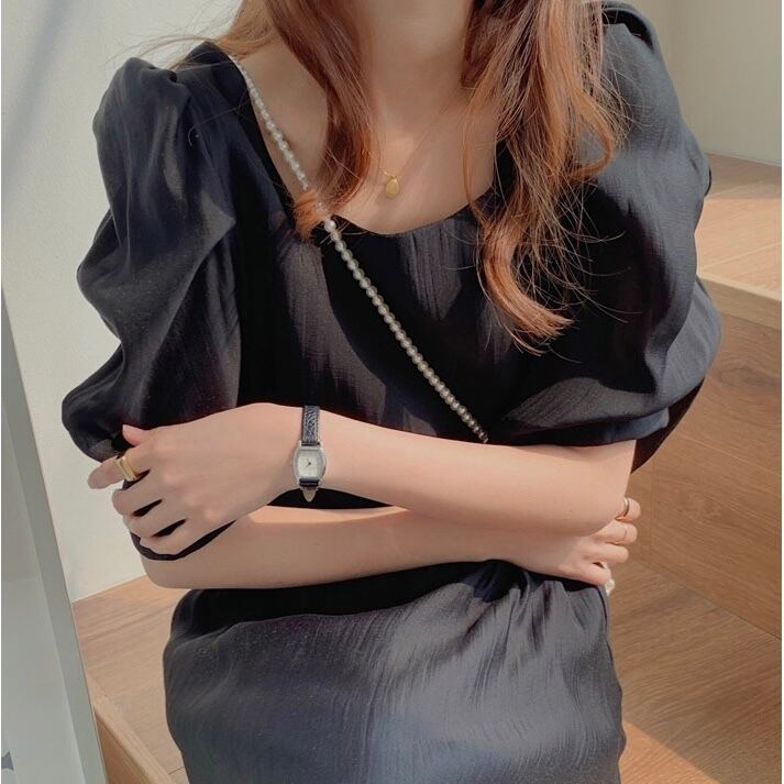 スクエアネックが鎖骨やデコルテ部分をキレイに魅せてくれるデザイン♪
