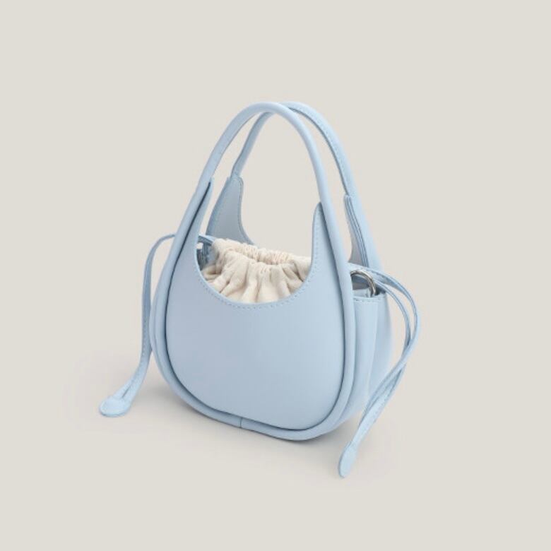トレンド感ある素材を活かした、巾着付きショルダーバッグ。