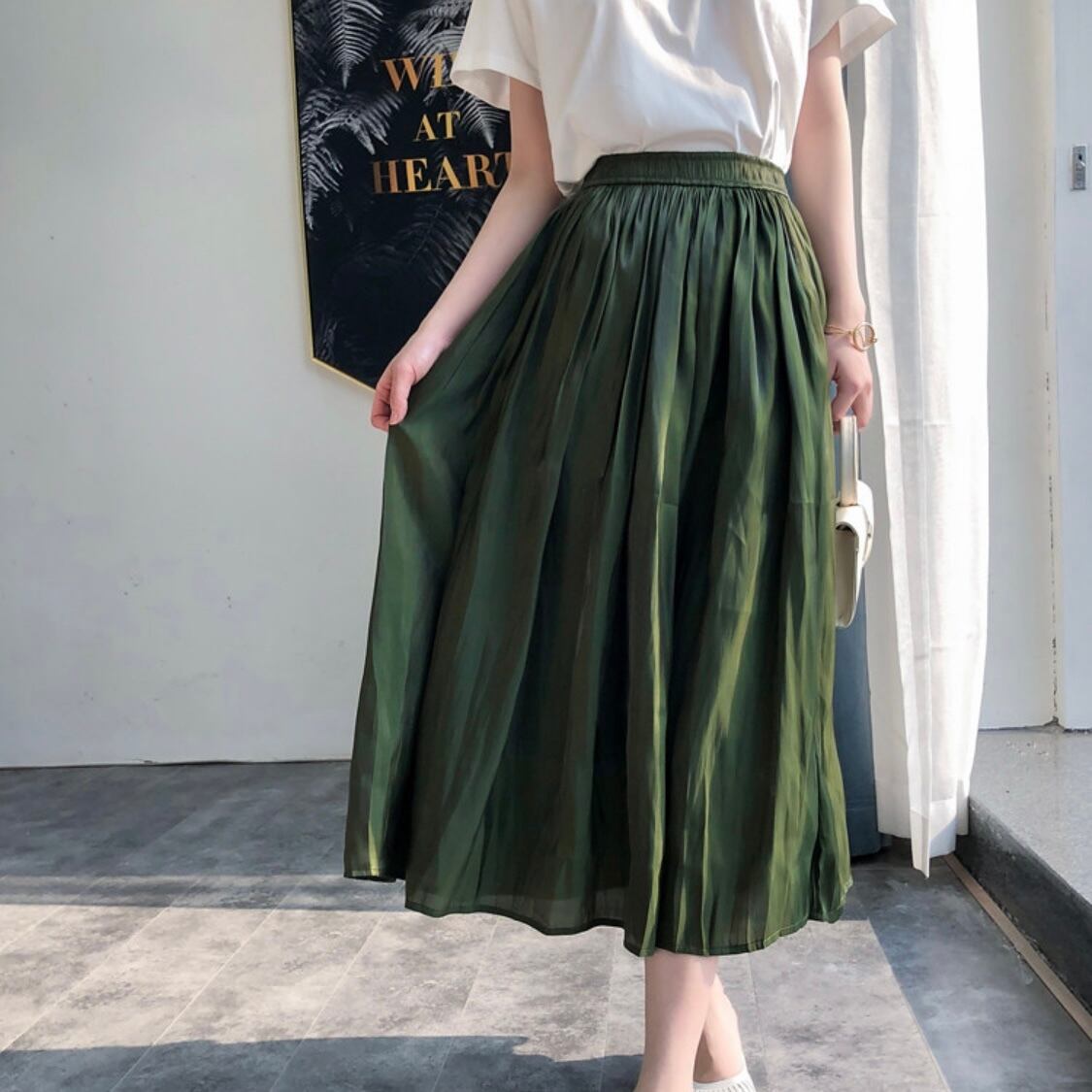 サテンならではの上品な素材感が華やかな印象のフレアスカート。