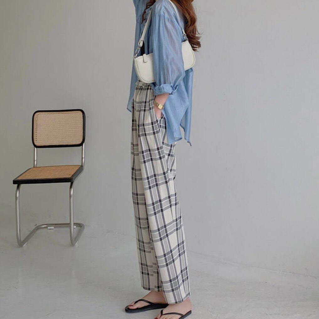ライトな印象のチェック柄が軽やかでフェミニンな印象を与え、スニーカーにはもちろん、きれいめローファーなどとの相性も抜群♪
