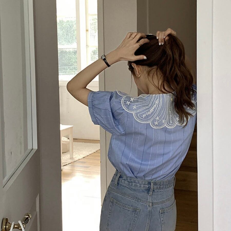 華やかなレース襟とパフスリーブが上品な女性らしさを惹きたててくれる一着♪