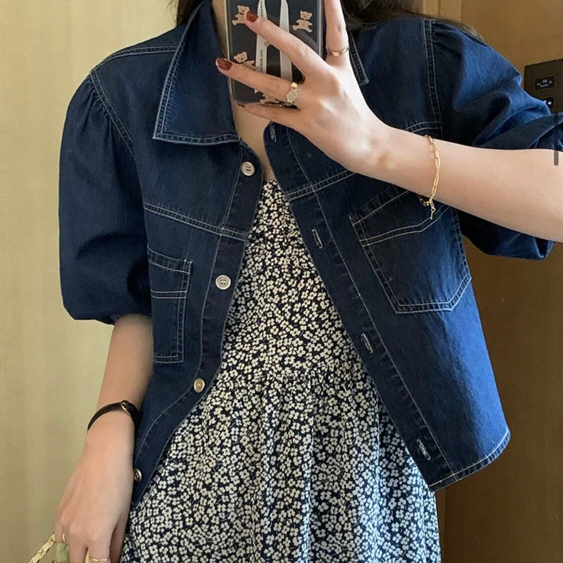 パフッとボリューム袖デザインが目を惹くデニムシャツ。