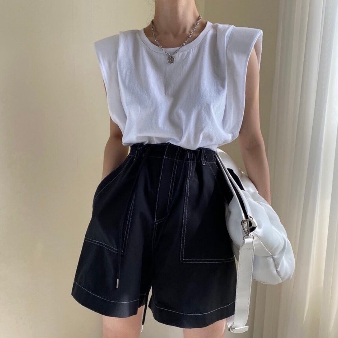 キレイめにもカジュアルにも○スタイリング自在のノースリーブTee。