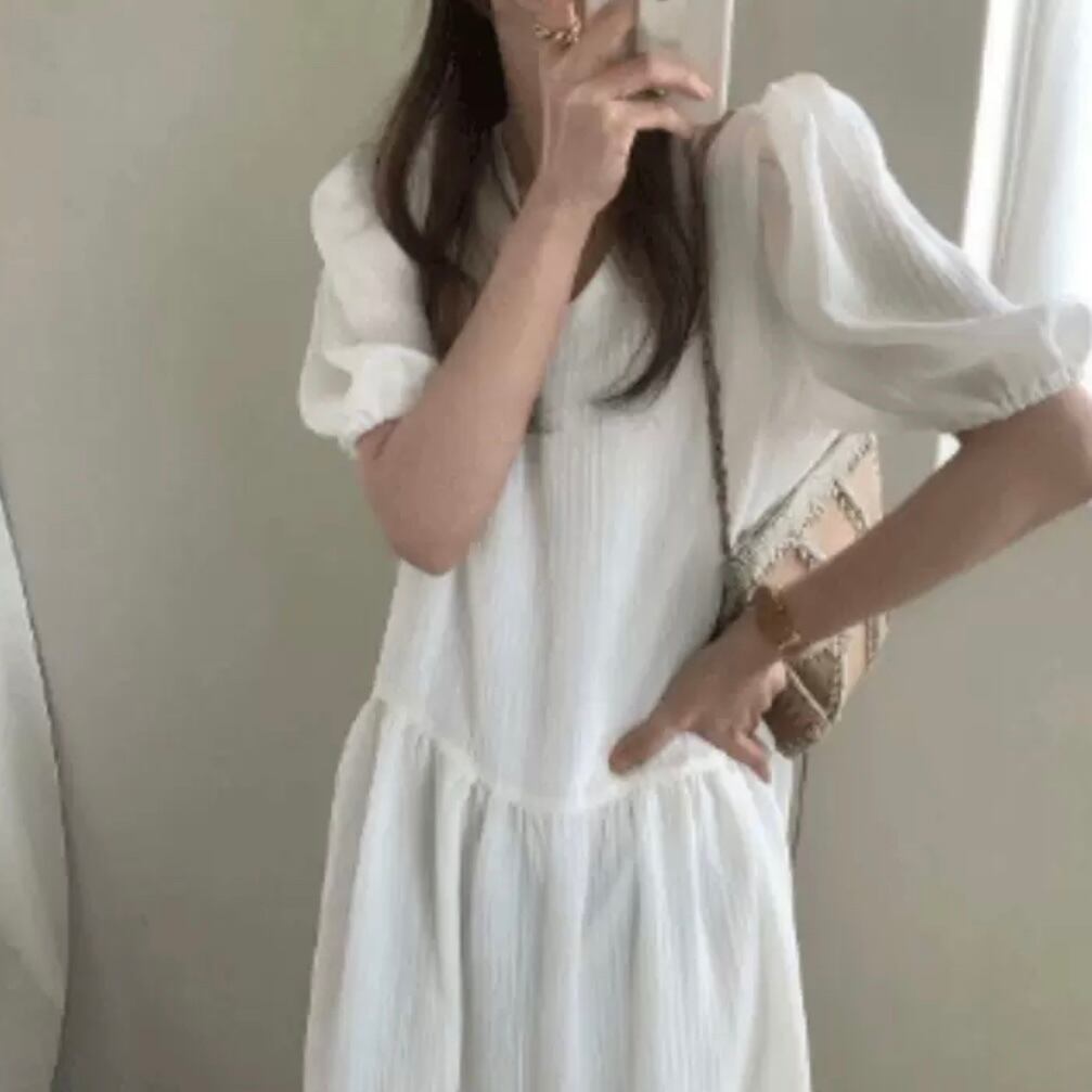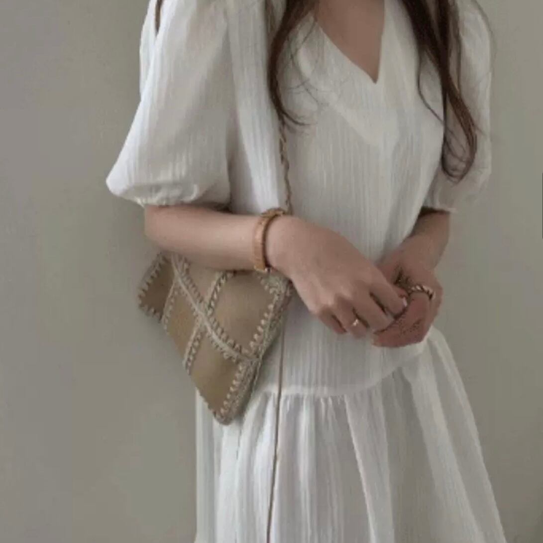 緩やかなAラインシルエットが女性らしいティアードワンピース。