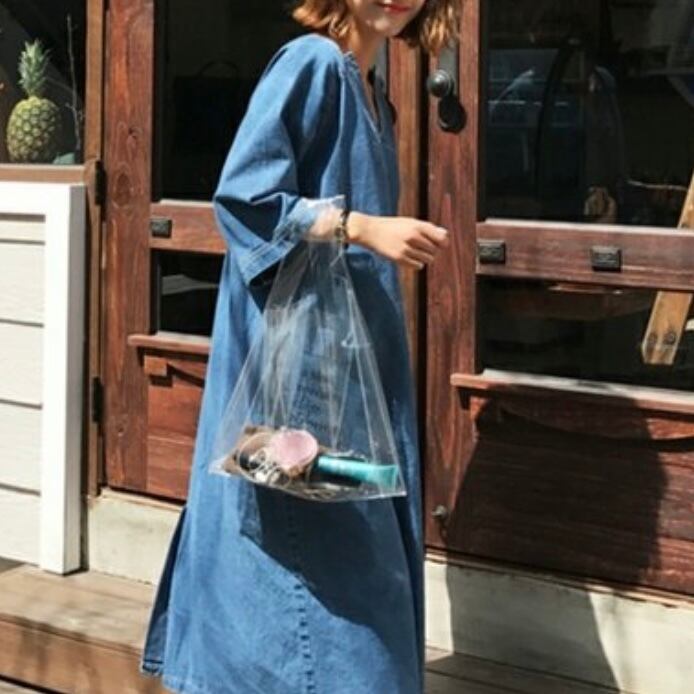 リラックスしたシルエットがデイリーに着こなしやすいデニムワンピース。