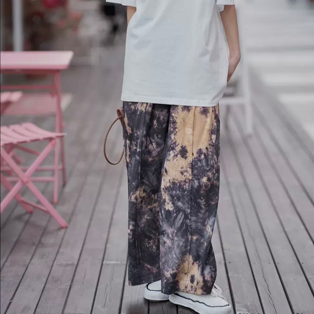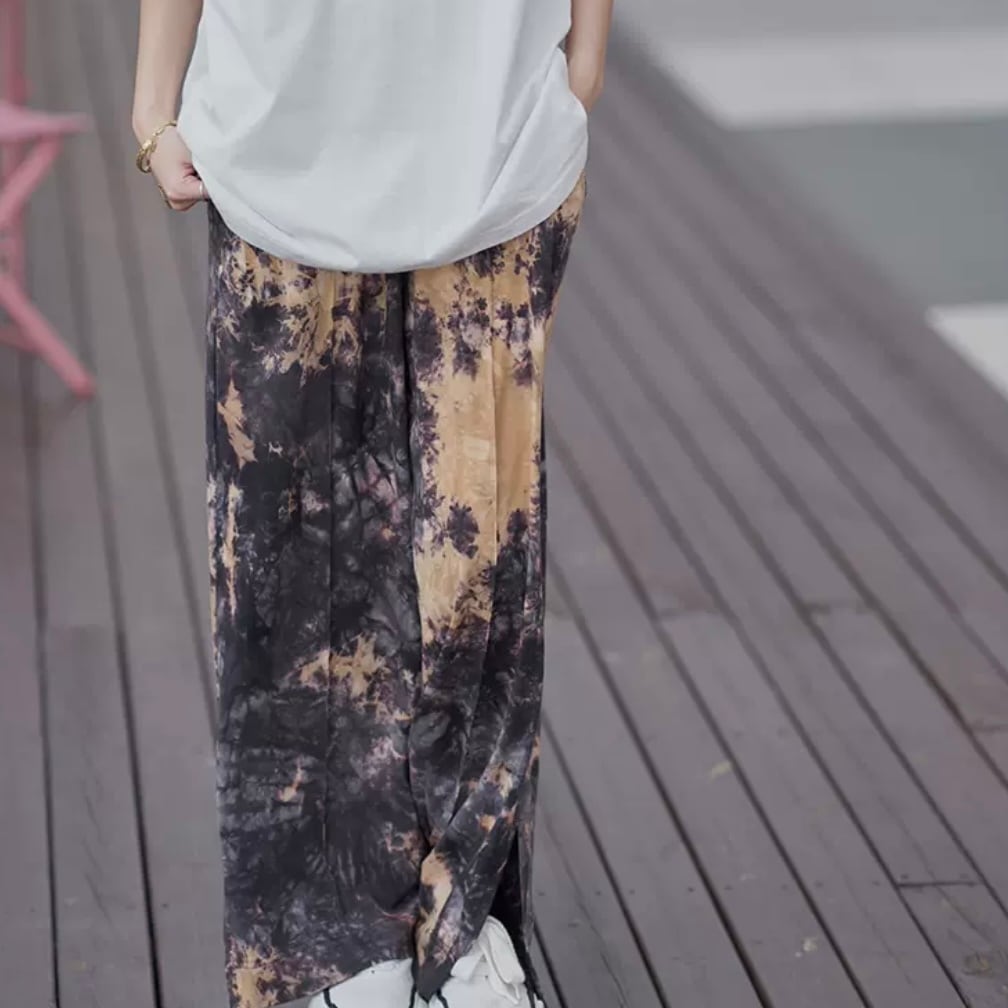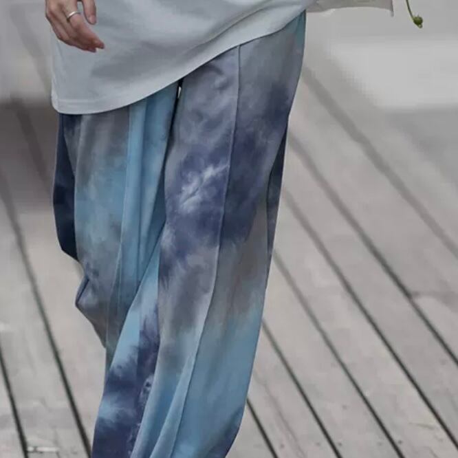 ムラ染めのタイダイ柄が可愛いスリットワイドパンツ。