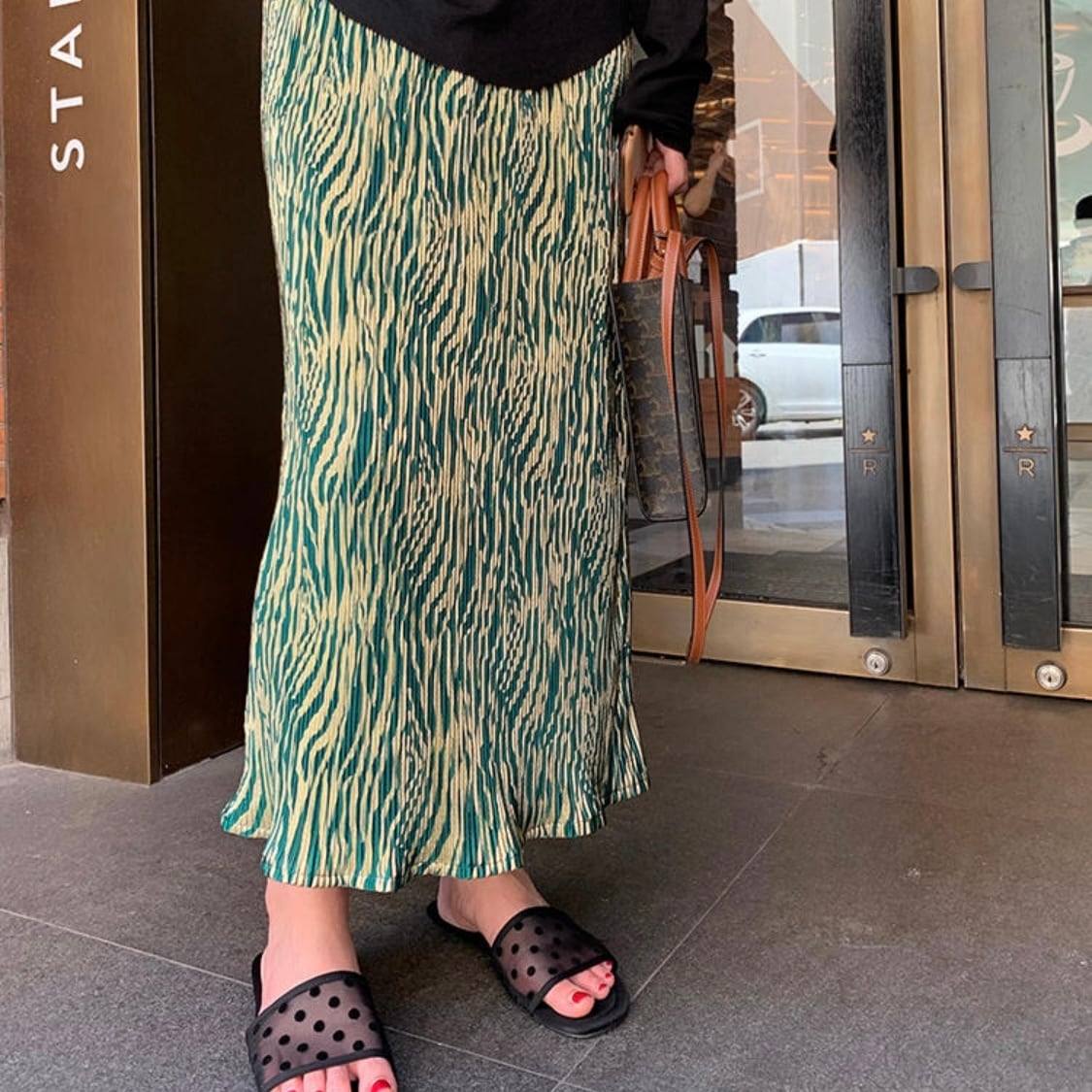 凹凸がはっきりした繊細なプリーツに、微光沢の質感が映えるロングスカート。