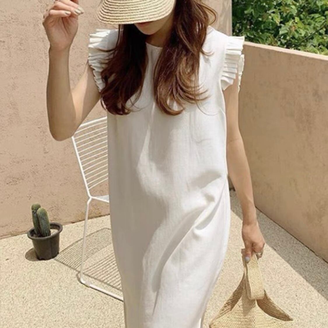 肩にほんのりかかるプリーツでノースリーブでも華奢見え♪