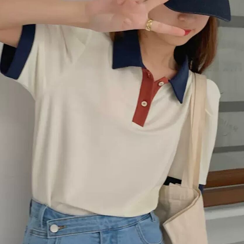バイカラーでトレンド感引き立つ!レトロでクラシカルな上品襟付きポロシャツ。