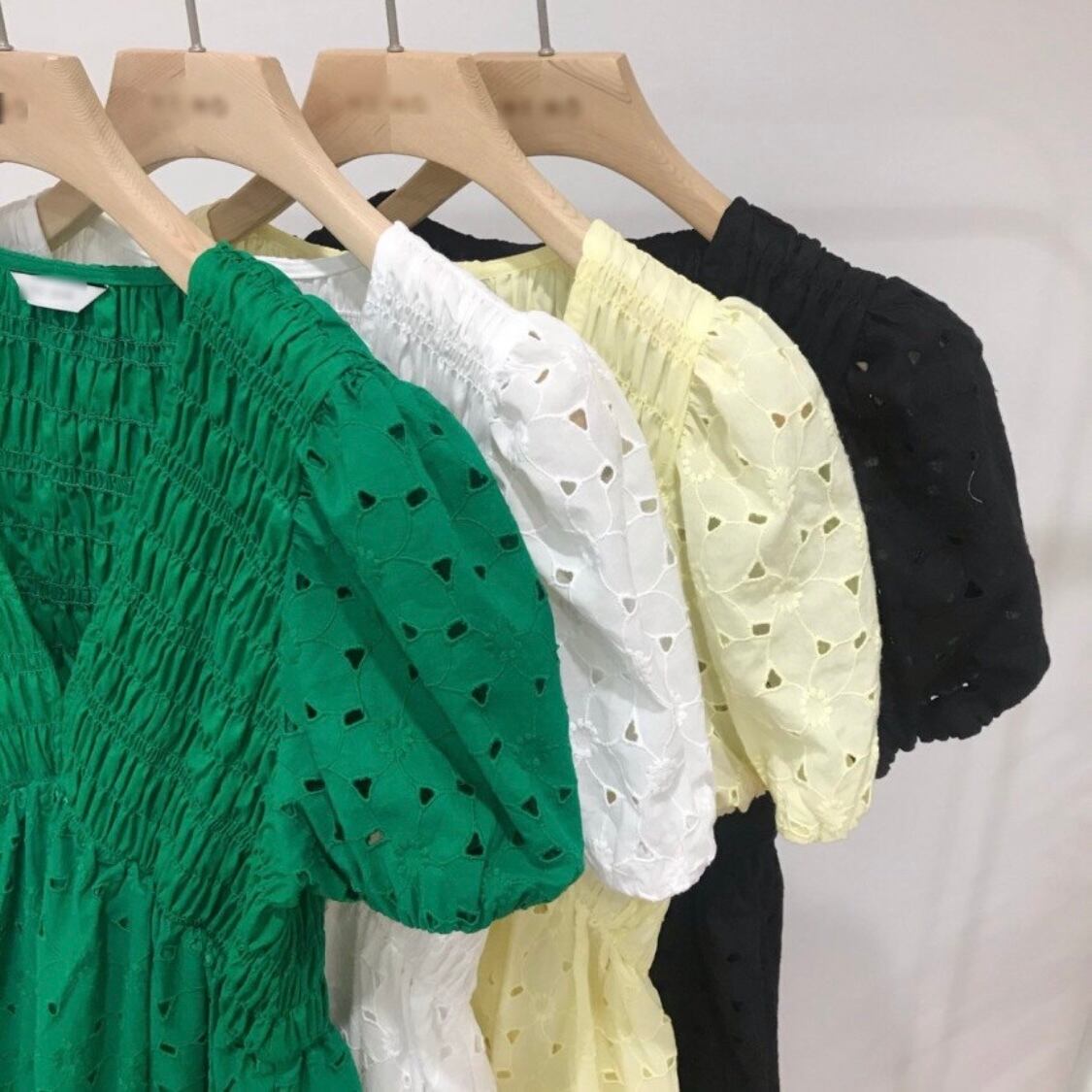 カットワークの刺繍が夏のヘルシーさと抜け感をアップさせてくれる一着♪