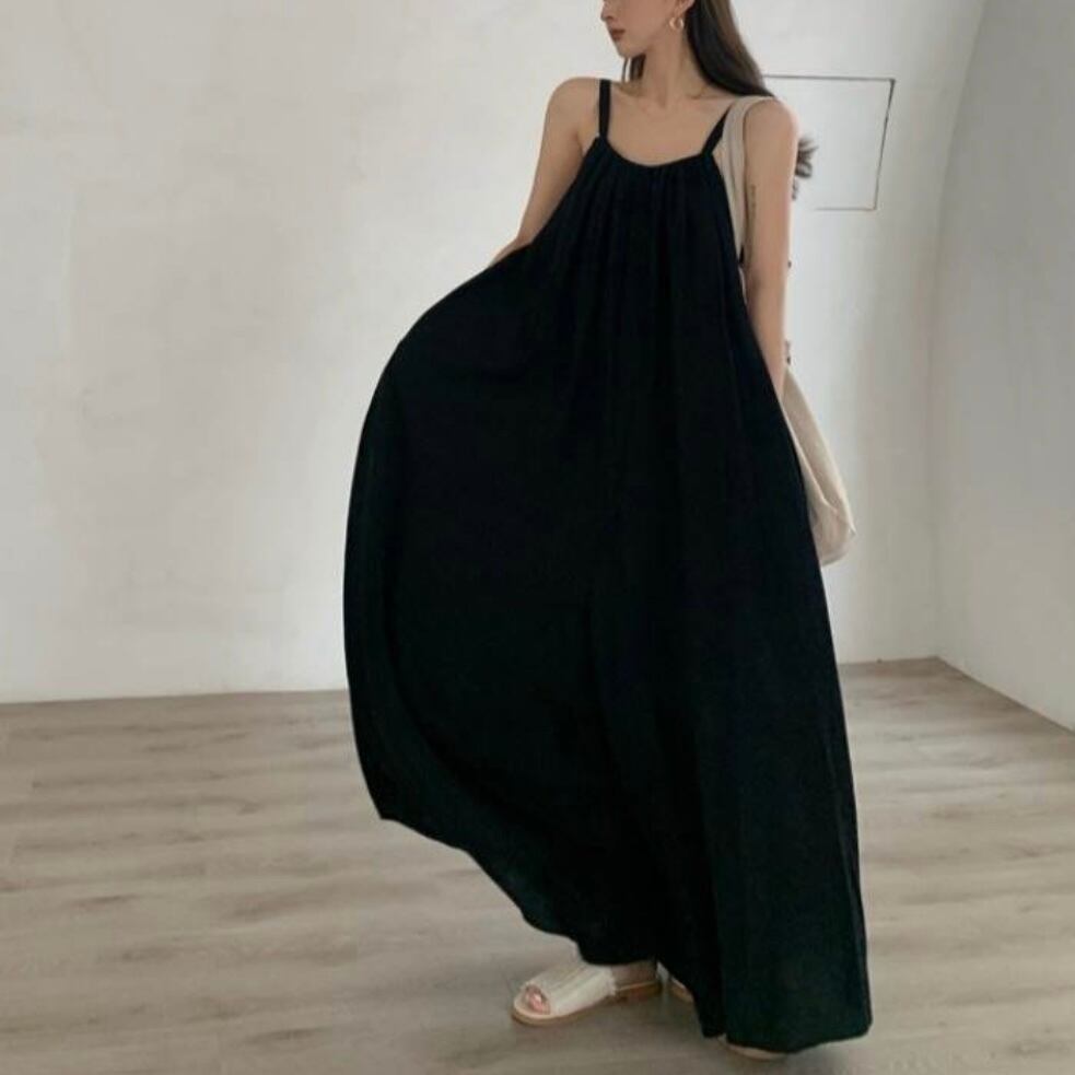 動くたびにふんわりと広がる華やかなシルエットが、優雅な大人の夏スタイルを叶えてくれるロングサロペットです。