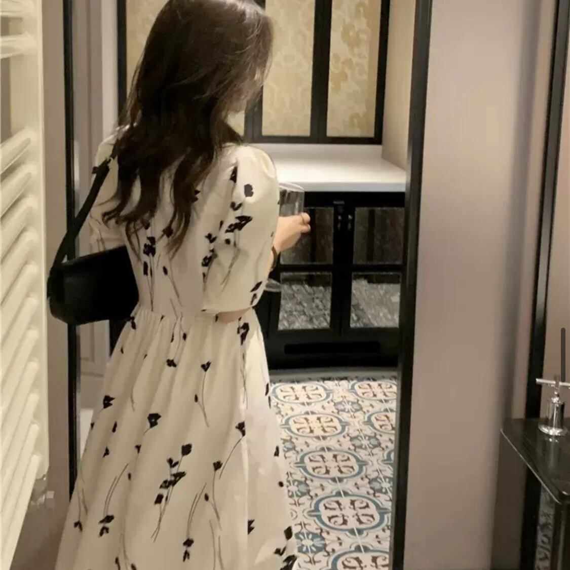1枚で主役級な、華やかな印象の花柄ワンピース。