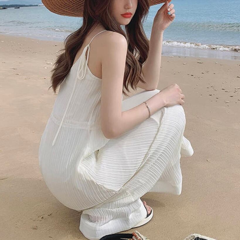 ストンと綺麗なマーメイドシルエットがおしゃれにきまる、ゆったりシルエットのキャミワンピース。